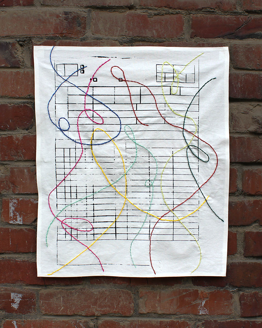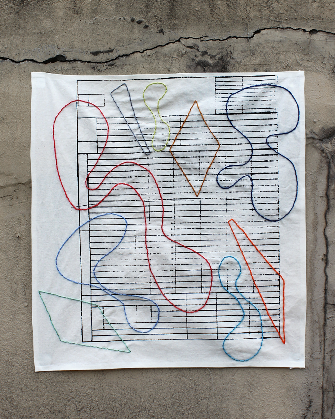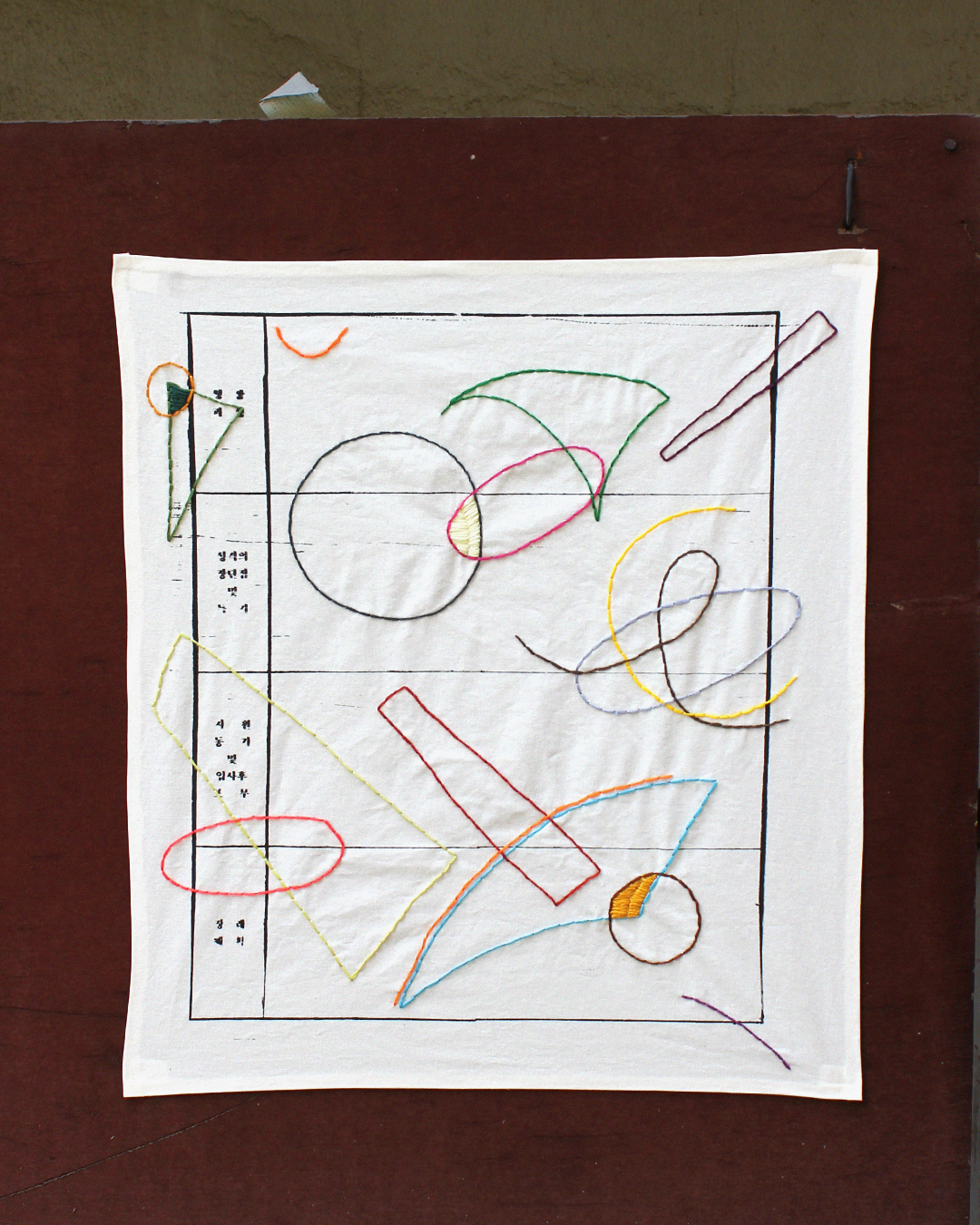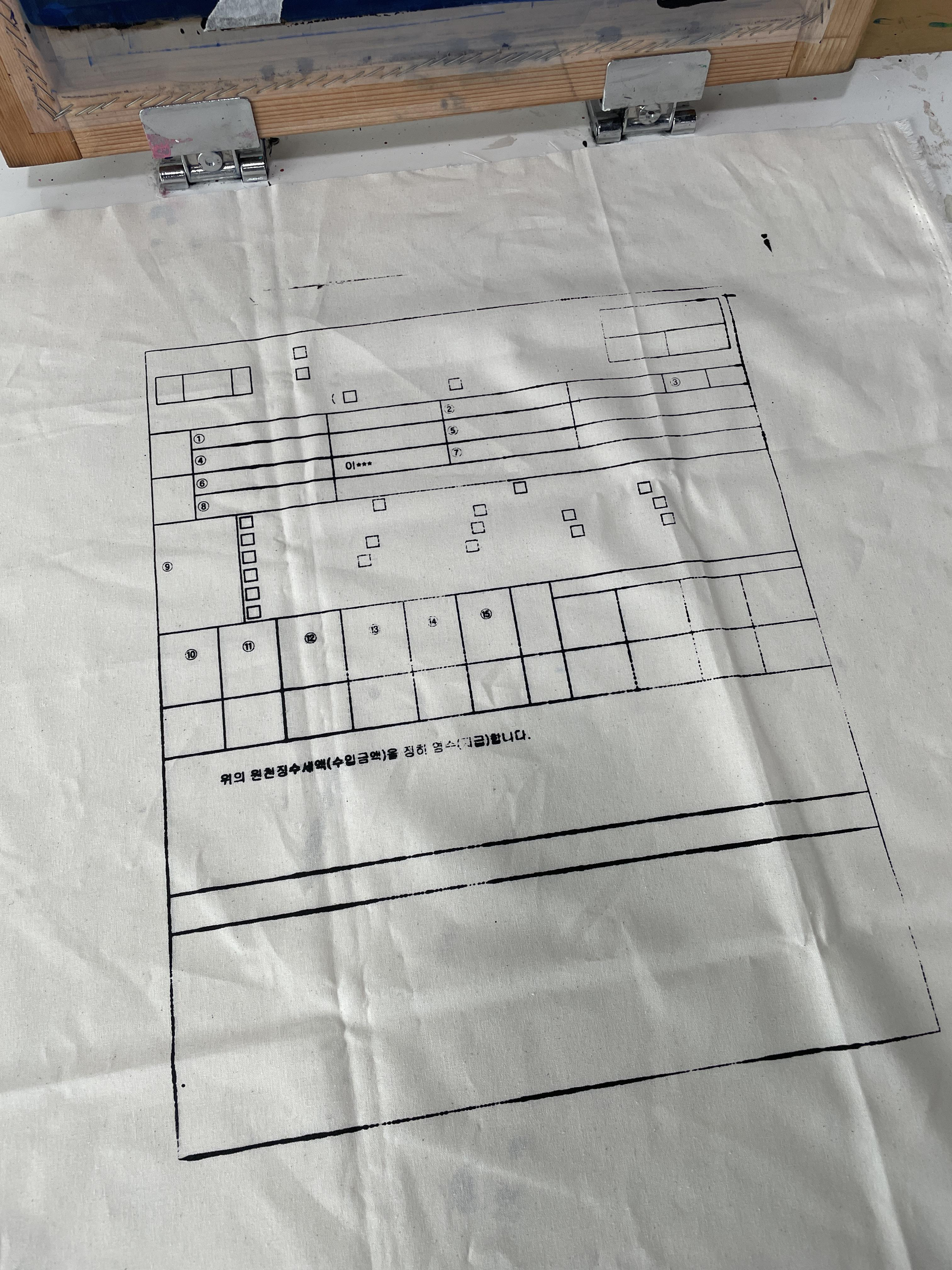이력서나 원천징수 영수증, OMR 카드처럼 삶을 수치와 항목으로 규격화하는 문서들을 실크스크린으로 패브릭에 인쇄한 뒤, 그 위에 추상적인 형태의 자수를 덧입혔습니다. 감히 낙서할 수 없는 형식 위에 무질서를 더해, 문서가 지닌 억압성을 무력화하고자 했습니다.